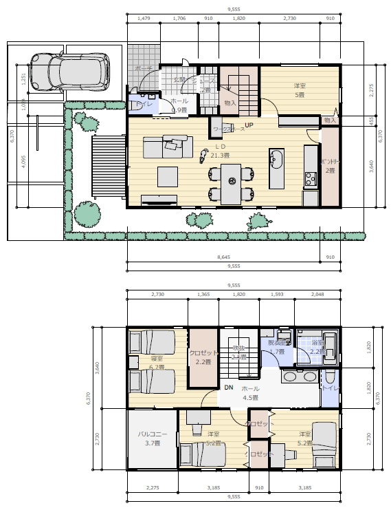 子供部屋4.5畳以上2室。2階お風呂。