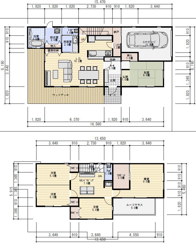 インナーガレージは下屋でも建物一体でも構いません。