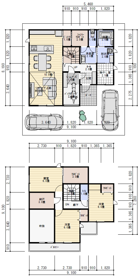 2階は夫婦の寝室1室6畳以上にウォークインクローゼット
