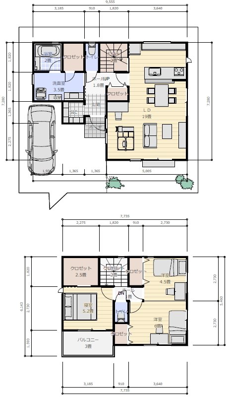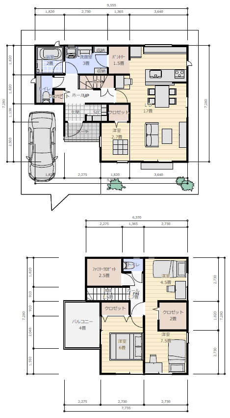 畳コーナーをなくしファミリークロゼットを2階に作ったタイプ