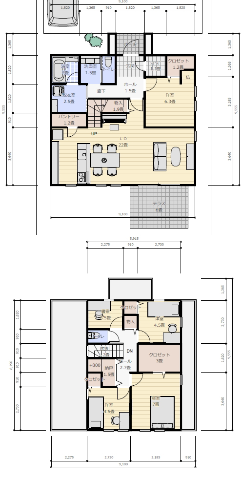 子供部屋×2(4.5帖にクローゼット)、