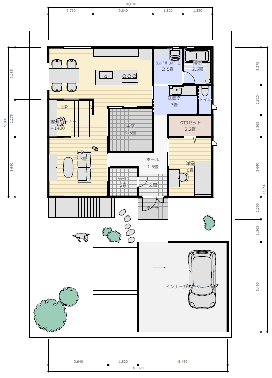 1)4LDK2階建て 木造の自由設計の注文住宅
