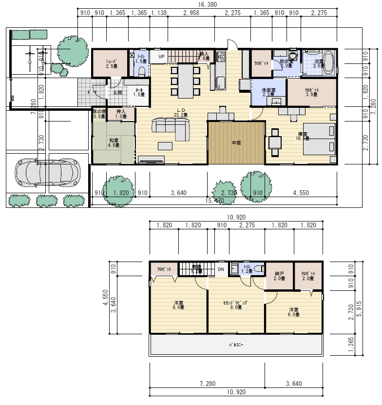 中庭のある間取りにして中庭に対してリビングから出れるようにしたい