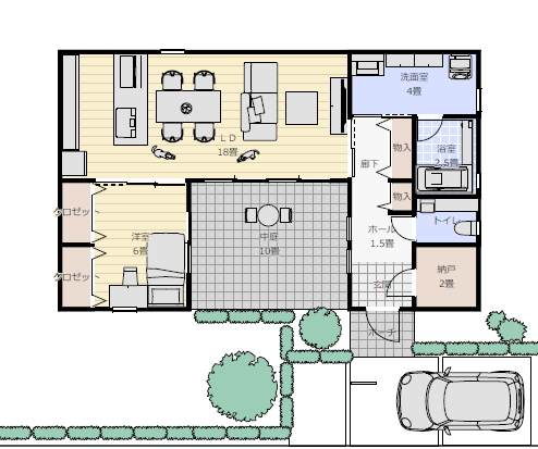 図面で真ん中に中庭を設けて