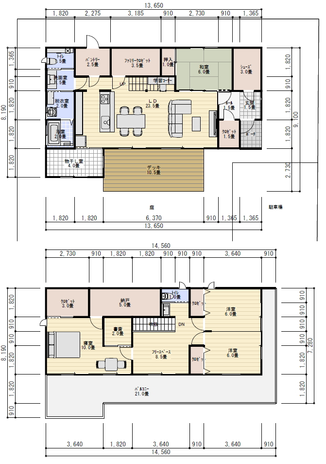 洋室 6畳 クロゼット 1畳 ×2室