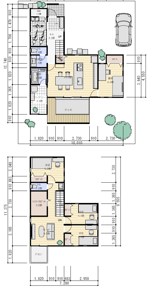 1階にLDK14畳、書斎(主人の部屋)が一室欲しいです。