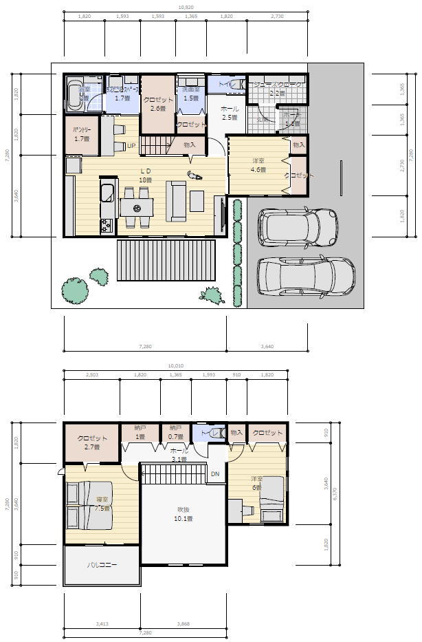 夫婦の寝室が7畳とウォークインクロゼットが欲しいです