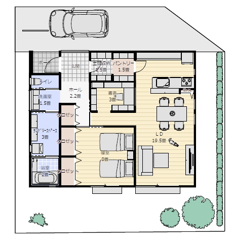 (シューズクローク、パントリー、物置兼用が望ましい)