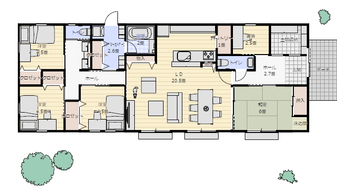 和室はリビングに接するようにしたいです。