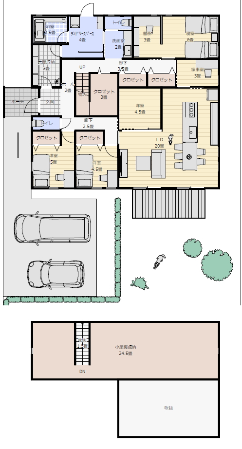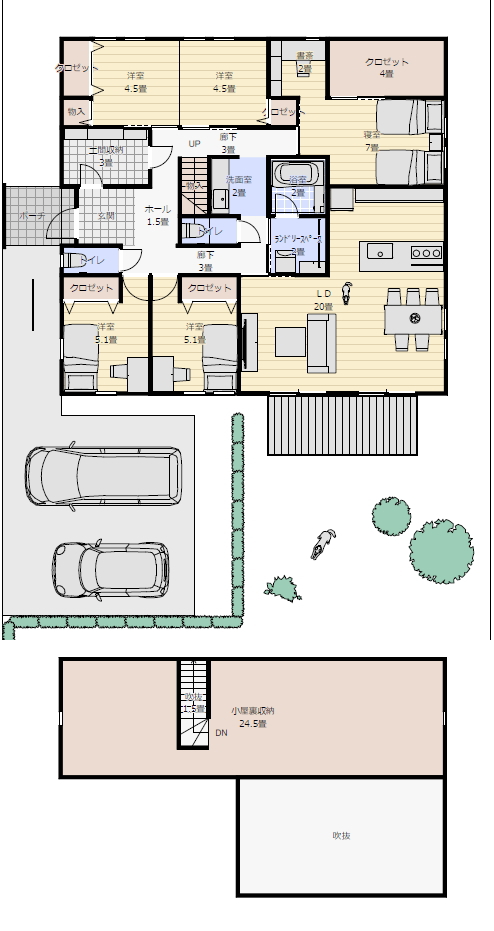リビングから少し廊下を挟んで全部の部屋を作りたい