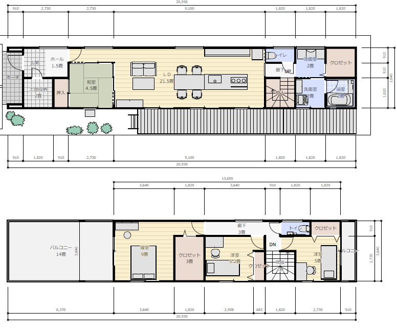 細長い家になりますので、