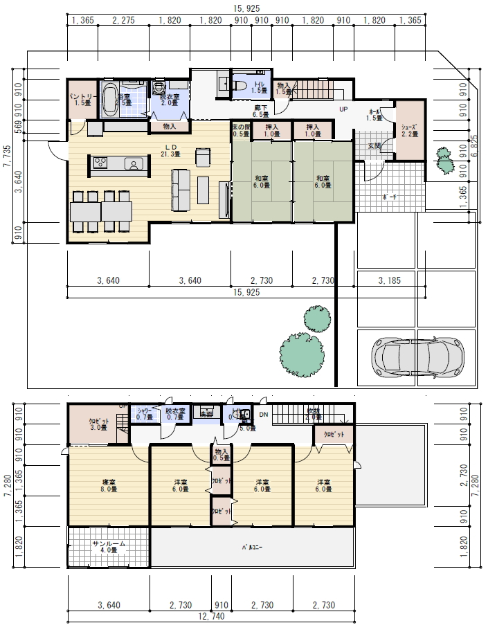 サンルームなしで和室4.5畳を追加した場合の