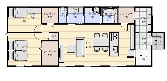 長方形の平屋の間取り