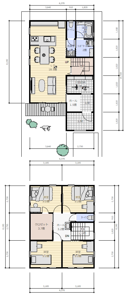 夫婦それぞれの部屋が2室4.5畳か6畳でほしい