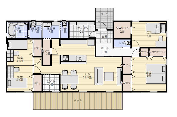 35坪4LDK 木造平屋建て