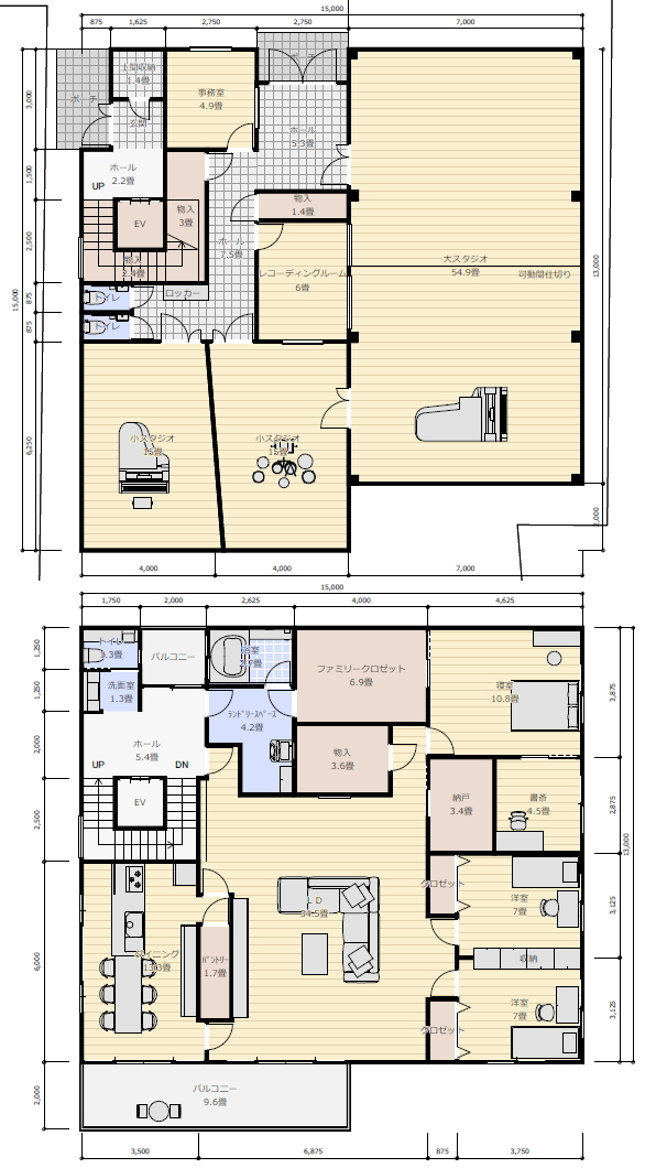 または大スタジオ部だけ、半地下の様に深く掘るか、