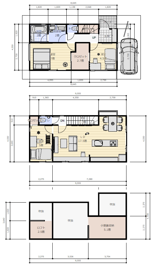 間口6.3m 奥行き11.7m 73.71㎡ 22.3坪