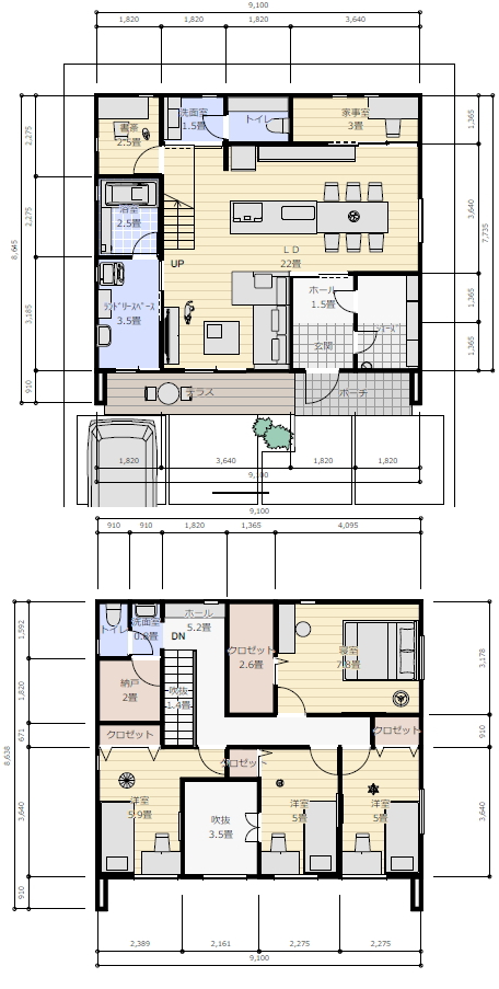 2階に子供部屋×3、