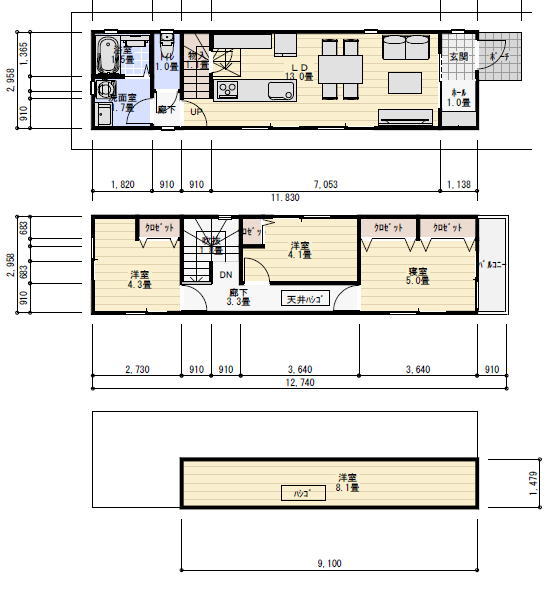 ○細長い土地なので、建物は実質幅3m強となってしまう、
