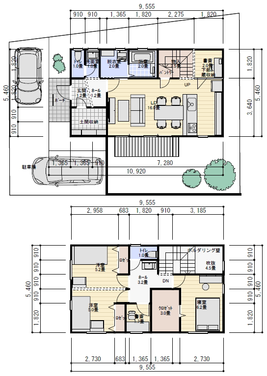 駐車スペース2台(現在1台ミニバン、将来的に+1台の計2台)