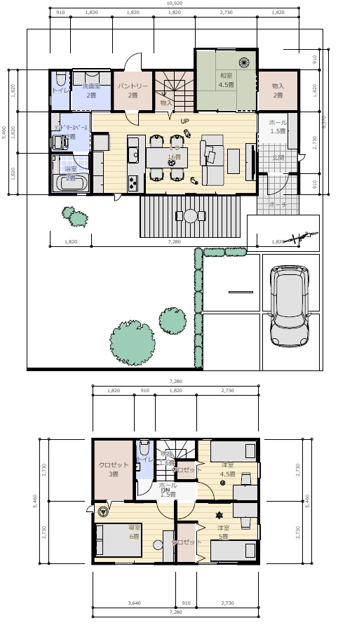 30坪4LDKパントリー収納の広い家の間取り図 理想の間取り 5年前 土地:開口13m 奥行き15m 接道:南道路 二階建て 30坪程度 一階にLDK16畳程度 リビングに隣接の和室4~4.5畳 パントリー できればランドリールーム 対面キッチン リビング階段 トイレ1階、2階(1階は手洗い付き) 二階に主寝室6?7畳程度 子供部屋4.5畳程度を2室 家事動線が楽になればありがたいです。 なるべく家相も考慮をお願いします。 外観は正方形か長方形にしたく、 できる限りコンパクトな家になればと考えています。 夫婦と子供2人の4人家族です。