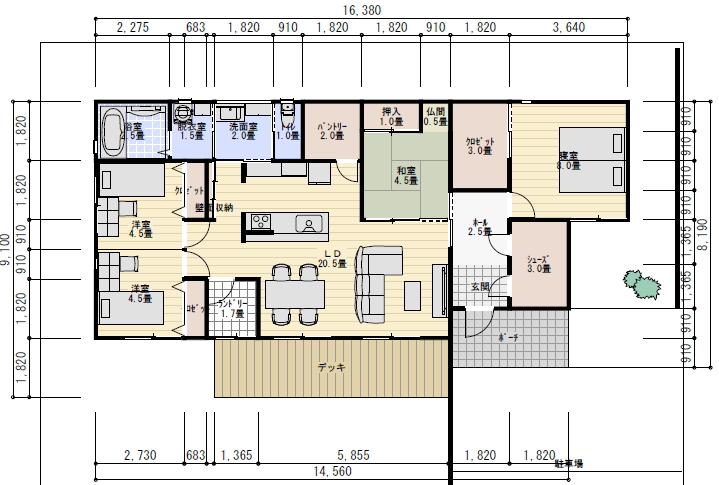 7〜8帖の夫婦用寝室とウォークインクローゼット