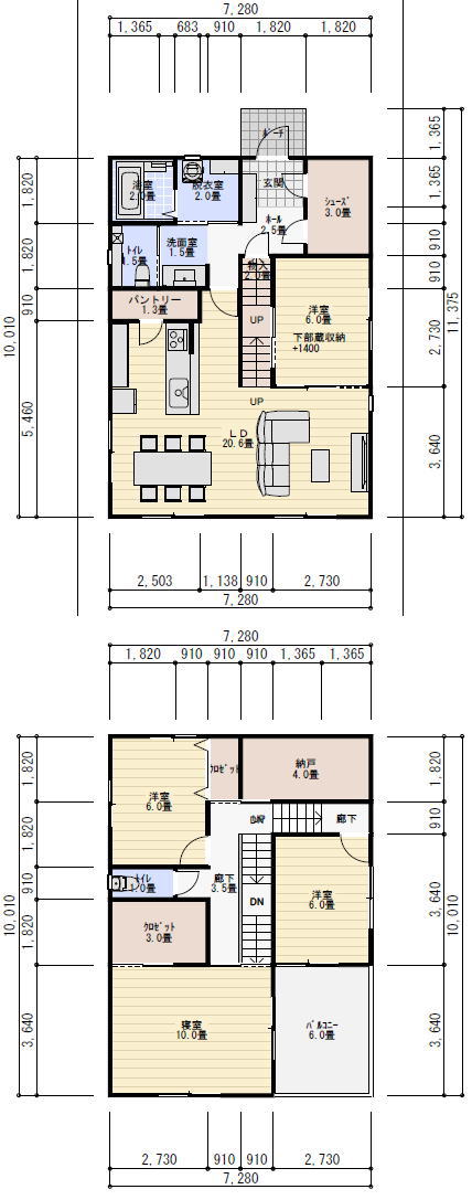 シューズクロークは玄関土間からとホールから出入りが出来る。