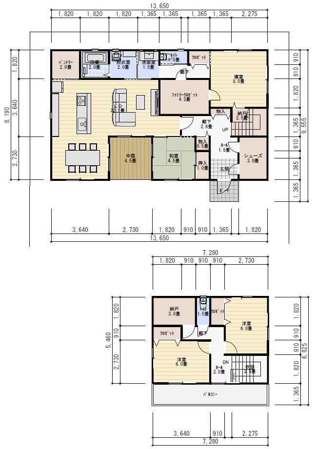 寝室は1階に設け老後には1階だけで生活できるようにする。