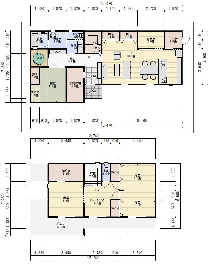 洗面室1.5畳 脱衣室 2畳 浴室 1坪